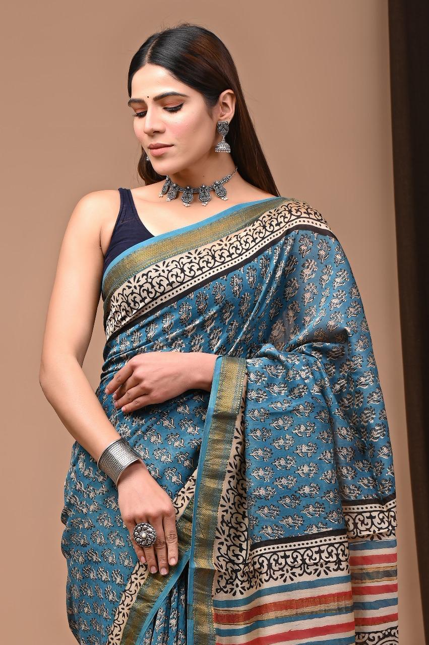 Exclusive Pure Hand Block Printed Maheshwari Sarees With Blouse to wear at parties, functions, or just casually, which is stylish and comfortable to wear for women. Wear this Saree and you will be a fashion statement every time with the brand of Tanchui.